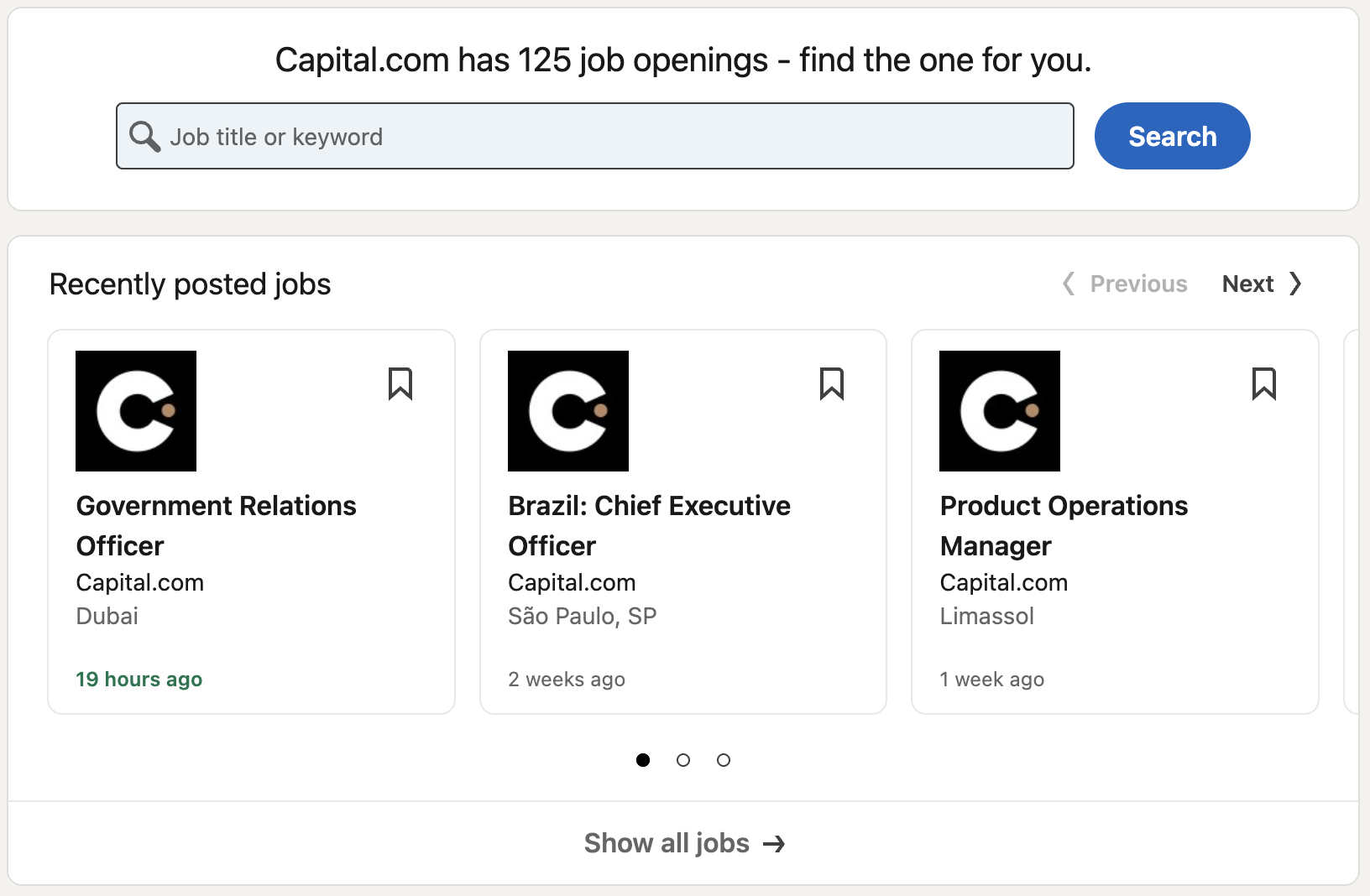 Start at Capital.com’s Careers page for the freshest roles, location filters, and team descriptions. If you don’t see an immediate fit, set alerts and follow the company on LinkedIn – most peers in our review series post actively and refresh requisitions weekly.