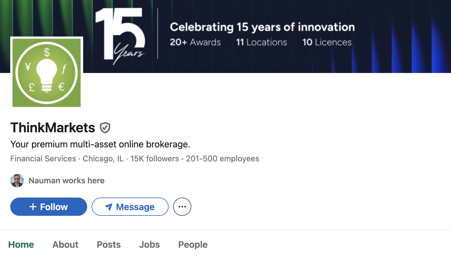 From an employer-brand perspective, LinkedIn is typically where candidates will look first for culture signals, leadership presence, and hiring activity. If ThinkMarkets wants to attract talent across Europe, APAC, Africa, and MENA, the consistency of culture storytelling matters as much as role posting.