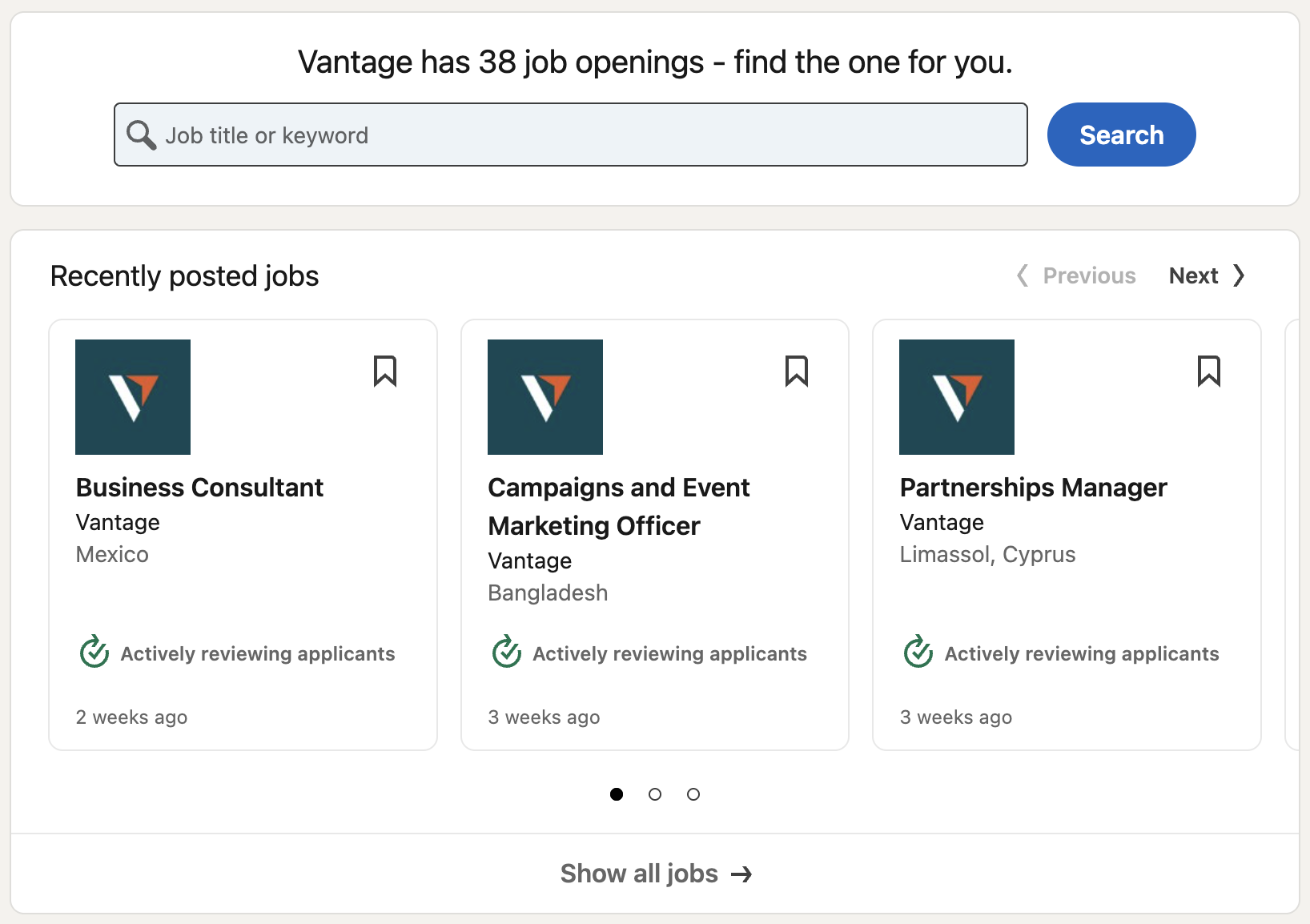 Don’t rely on LinkedIn alone. Vantage runs a hub‑and‑spoke model with multiple regional entities, and many hubs hire through local job boards first. Track leading platforms in each market you target, set daily alerts for “Vantage” plus your role keywords, and watch for localized titles and language requirements. This is especially true for operations, compliance, regional marketing, and client support, where teams often close niche needs fast at the hub level.